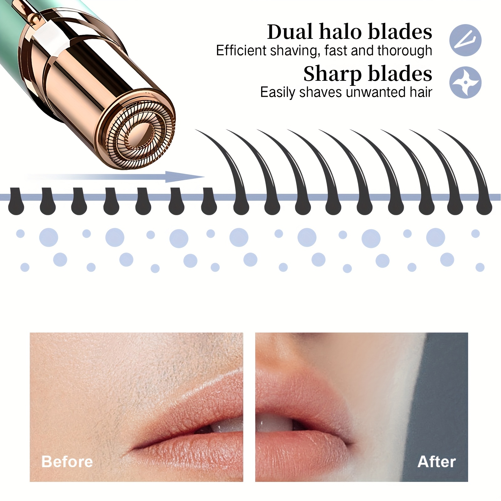 [Painless Hair Remover] Painless Rechargeable Facial Hair Remover for Women | Electric Facial Hair Removal for Face, Lip, Chin with 2 x Replacement Heads
