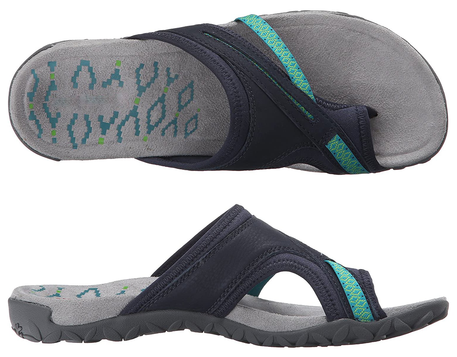 Simply, slip them on and snug your feet in place around the toe clasp for enhanced support.