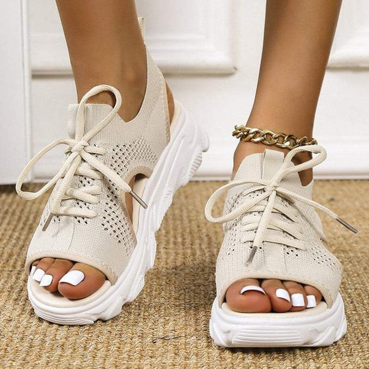 The bunion correction sandals feature a soft fabric lining and a polyurethane footbed with metatarsal support.